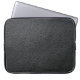 ブラックレザーの質感と裏地のクローズアップ ラップトップスリーブ