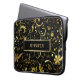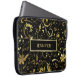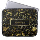 ブラック及び金ゴールドフローラ織物パターン ラップトップスリーブ