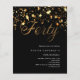 A、モダン彼と彼女の両方のスタイリッシュ40歳の誕生日パーティーのための招待。金飾星を持って黒い背景と大きな書金ゴールド文字の単語フェイク40。名前とパーティー・詳細のパーソナライズおよび追加1枚= 1枚の招待状を印刷したエッジからエッジ
