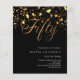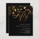 彼と彼女の両方のための50歳の誕生日のパーティーのための招待モダン。金飾星を持って黒い背景と大きな書金ゴールド文字で50フェイクという単語。名前とパーティー・詳細のパーソナライズおよび追加1枚= 1枚の招待状を印刷したエッジからエッジ