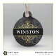 金ゴールドのエンブレムとカスタマイズ可能な文字エレガントを備えたクラシックブラックとグレーのペイズリーパターンを特徴とするペットIDラベルで、あなたの犬や猫をスタイルでドレス。フロントにペットの名前を、バックに電話番号を付けて、自分やペットの新しい飼い主、動物愛好家に贈り物を作る。