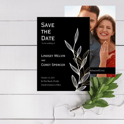 ブラック金ゴールドリーフRSVPカード2 (正面)ブラック金ゴールドリーフRSVPカード2 (裏面)ブラック金ゴールドリーフRSVPカード2 (正面/裏面)