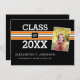 黒モダンとオレンジの写真卒業発表カード。