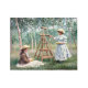 「ジヴェルニーの森の中で、スザンヌ・ホスケベと彼女のイーゼルにあるブランシュ・ホスケベ読」は、ジヴェルニーのモネの家での日常生活を静かに垣間見ることができる。この作品は、モネの義理の娘であるブランシュ・ホスケベがアウトドアを描き、妹のスザンヌ・ホスケベが近くに絵を描いる穏やかな瞬間を捉え読ている。日に照らされた緑豊かな森の中で、光が木々の葉を遮り、穏やかな影を落とすシーンが広がる。ゆったりとした流動的な筆跡が特徴で、光と大気の瞬間的な効果を捉え、親密さと自然調和感を生み出す。被写体の絵を描ゆったりと追求祝して鮮やかも、光の捉え方や自然の色の捉え方に魅遊力を感じさせる。