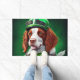 緑のサンパトリックの日の衣装を着て、頭を回転させる光沢のある緑の自転車のハンドルの後ろに毛皮の友人。犬はフェスティバルの合奏団に身を包み、緑色の蝶ネクタイと頭の上に心地よく座るマッチしたトップハットを完備している。衣装はシャムロックとレプレシャンの複雑なデザインを備え澄ん、この犬はスタイルのサン祝ドパトリックの日に準備ができている。