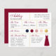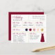 日付と場所、色結婚、ブライダルパーティ、花嫁のメイドのドレス、花嫁提案のメッセージを含むブルゴーニュと金ゴールドの花嫁のインフォカード。花嫁の名前と肩書は書書き物にエレガントある。右下の角にはバーガンディのドレスがある。中央には円の色結婚がある。金ゴールドの円を除いて結婚、金ゴールド箔の色を含む色を変更することができフェイクる。デフォルトのカラーはネイビーブルー、ブルゴーニュ、ほこりっぽいバラ、赤面ピンクと金ゴールド。