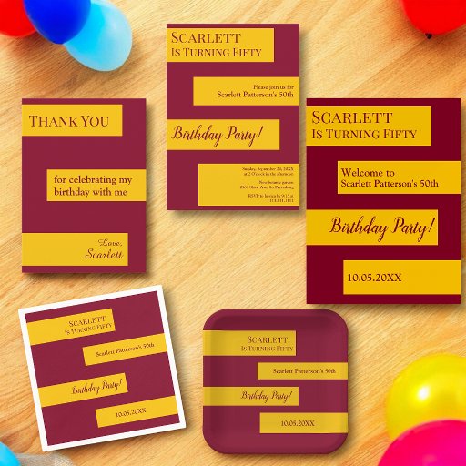 このエレガント金ゴールドとバーガンディのサンキューカードは誕生日に最適でモダンすシンプル、金ゴールドの上にバエレガントルガンディの書ストライプ跡が施されたデザイン。