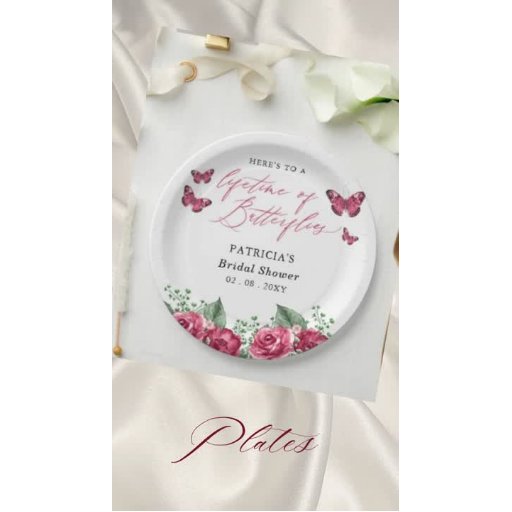 ブルゴーニュ蝶の一生蝶のシャワーの招待フローラ モダンエレガント屋外