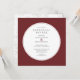 この素敵なリハーサルお祝いの招待であなたの特別なイベントを開始する。このデザインは、前面にバーガンディの背カスタム景とタイポグラフィ、背面に植物花を備えている。