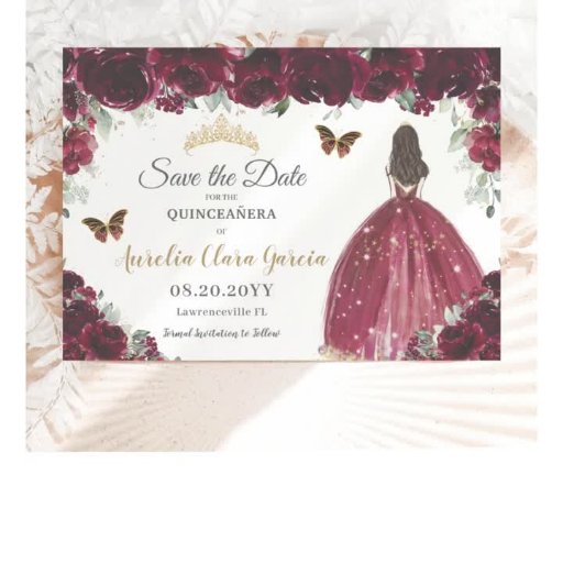 Elegant Rich Burgundy Floral Quinceanera Goldデザイン: The Happy Cat Studio