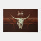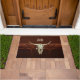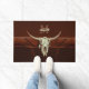 牛のスカルモノグラムの国西のカウボーイの古い田舎の台所ドアマット。ヴィンテージブラウン農家のデコール旧野生の西カウボーイスタイルアンティーク。トレンディークール農モダン畜デザイン画像の著作権はMarg Seregelyi Photographyです。