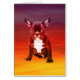可愛いフランスのブルドッグ犬カラフルの背景で座って、この犬を愛する人のための完璧な贈り物アイディア。