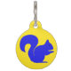 おもしろいの明るい犬のラベルは、前面に青いリスのシルエットと日当たりの良い黄色で行われた。ラベルの背面は明るい青色で行われ、白いカスタム文字。犬の情報で文字をパーソナライズする。私たち素晴らしのマッチする犬製品と