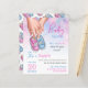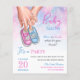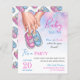 予算のベビー性がパーティの招待状を明らかにする。白い背景の上に青とピンクのベビーの靴だけでなく、2つの手が互いを保持する。タイポグラフィ読のベビーの姓をブルーやピ後を追ンクでは何をしていますか考え?完全なイベントと詳細を追加し連絡てパーソナライズ。