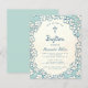 ブルーの花枠の洗礼招待状