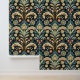 ブルーアクアピンクイエローアールヌーボー壁紙