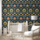 ブルーアクアピンク金ゴールドブラウンアールヌーボー壁紙