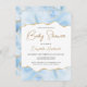 このトレンディーの赤ちゃんシャワー招待は、赤ちゃん縁どブルーの色合いで金ゴールドグリッターのハイライトと水色のアゲイトの上と下をフェイク特徴としている。金ゴールド色の手書きフォントに「ベビーシャワー」と表示される母親の名前。白い背景にパーティー詳細を木炭グレーで追加する。反対側に一致するパステルブルーと金ゴールド攪拌画像が表示される。