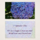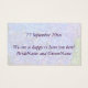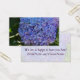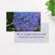 青あじさい結婚の贈り物ラベル。花嫁とグルームズは、リハーサルのディナーまたは披露宴で個々の場所設定アイテムのためのメッセージをパーソナライズすることができます花のマークOに穴を開け離れ、その後、開口部を通してリボンを通す。