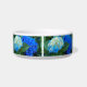 可愛らしい青いあじさい開花の写真を再現した繰り返し柄の猫や犬のペットフード。素敵なフローラデザイン!ペットボウルサイズを選択。