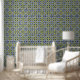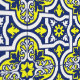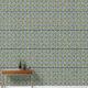ブルーイエローホワイトフローラヴィンテージタイルオーナメント 壁紙