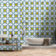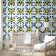 ポルトガルのアズレジョ(紋章の)フラ・ダ・リとダイヤモンドの形の要素で装飾パターン。グラフィックプリントは最新の壁紙トレンドの一つであり、構造の感覚と部屋スキームへの命令を好む人のための大きなニュースである。強い幾何形状や繰り返しはっきりしたパターンは、深さと動きを加える優れた絵を描ものであり、一つでは同じ方法では達成できない。