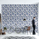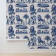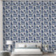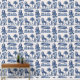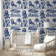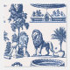 サバンナに似たライオンと茂みをセットにしたブルーインクのスタイルで作られた豪華な壁紙。