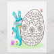ふわふわの青いイースターバニーが巨大なイースター絵を描卵の準備ができている。