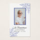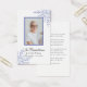 感謝していブルーウィンタースノーフレーク葬儀記念祈りの言葉と詩のカードで出発した人の生活サービスのお祝いに参加する客かわいらし客エレガント。写真、自分のメッセージ、詩や祈りの言葉をバックにパーソナライズ。白い背景でカスタム隅々を飾る複雑な青い雪の結晶を特徴とする上品な冬の死のトリビュートカード。