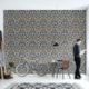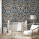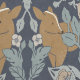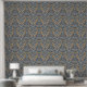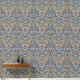 ブルーウッドランドブロックプリントダマスク 壁紙