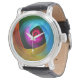 ブルーオレンジピンクモダン抽象芸術アートパターン#24 腕時計