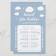 あなたの'Would She Gameあなたの天国のハイライトを送信した赤ちゃんシャワーテーマブルー!このおもしろいアクティビティは、クラウドテーマベビーシャワーテーマとクラウド天国ベビーシャワーアイディア用に設計されたベビーシャワーの小さな部分を完全に補完する。天使のテーマの赤ちゃんシャワーアイディアと天国の赤ちゃんシャワーテーマの小さな部分と夢のような赤ちゃんシャワーテーマを作成する。クラウド9ベビーシャワーテーマ、クラウド9ベビーシャワーテーマ、クラウド9ベビーシャワーテーマ、ブルークラウド9ベビーシャワーテーマで体験を向上!