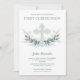 このモダン最初の聖餐式の招待は青いクロスと水の色のエレガントと花の芽を備え、あなたの息子の特別な機会に理想的である。私たちの店のマッチングアイテム。