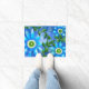 ブルーグリーンフローラ抽象芸術アート付きドアマット ドアマット