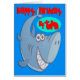 大きな青い漫画のサメと4番目の誕生日グリーティング。