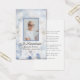 感謝していお客様のライフサービスのお祝いに出席するゲストの青色のカーネーションフローラ葬儀記念祈りの言葉/詩のカードと出発かわいらし。故人の写真でパーソナライズし、感謝のメッセージと詩や祈りの言葉の背中に。白いエレガントカーネーションの花の花の花びらの色彩の鮮やかフローラ写真を淡い青色の色でデジタルの水の色を使ったカードを使用した花の死のトリビュート淡い色のカード。