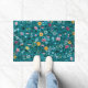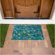 ブルーティール(緑がかった色)グリーンレッドピンクイエローフローラルパターン ドアマット