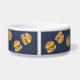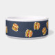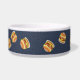 ブルーデニム柄のドッグボウルにハンバーガーズを入れる ボウル