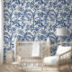 青と白のヤシの木やつる植物を使用して、この熱帯性の壁紙パターンを作成した。あなたの好きな部屋であなたの壁を暖めるために完璧なカバー。