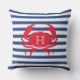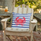 ブルーネイビーホワイトレッドカニ航海のモダンストライプの屋外枕