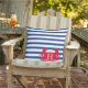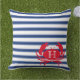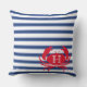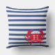 ブルーネイビーホワイトレッドカニ航海のモダンストライプの屋外枕