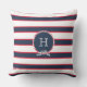ブルーネイビーホワイトレッド航海のモノグラムモダンストライプ屋外枕