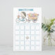 青い自転車に水色のハリネズミを搭載したおもしろいベビーシャワービンゴゲームで、フローラワゴンを「ベビービンゴ」バナーの下に引っ張って楽しむことができる。各マスにギフトアイディアを埋め、ギフトの開店時にマークを付ける。最初から5連勝!庭、森林、または男の子をテーマにした赤ちゃんシャワーに最適なマッチ。
