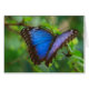 青い素晴らしモルフォ蝶が緑の葉の枝の上に残っている。