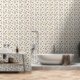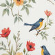 赤と金色の花の中にブルーバードが入った美しい壁紙。鳥や自然、花を愛する人に最適で、明るい色は小さな部屋でも明るくなる。