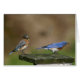 女性および男性のブルーバードは彼女達のベビーを食べ物を与えることを入る直前の巣箱頂上坐ります