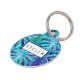 紫色のヒントと青、トロピカルパーム葉ツリーのペットの名前とパーソナライズされたペットのIDラベル。