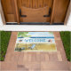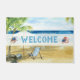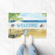 青いビーチ沿岸海歓迎Doormat海の生活グラフィックと美しいビーチ背景。ビーチ素晴らしのフロントホームまたは友人や家族の生活海のフロントのためのギフトとして。