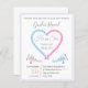 予算の赤ん坊シャワーまたはジェンダーが招待を明らかにする。白い背景には、ピンクとブルーの飛行機がそれぞれ愛のハートの形に煙を放つ。タイポグラフィ読文字「彼か彼女は何になるベビー?」。完全なイベントと詳細を追加し連絡てパーソナライズ。