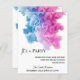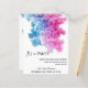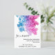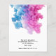 予算の赤ん坊シャワーまたはジェンダーが招待を明らかにする。白い背景のデザインは青エレガントとピンクの煙で構成され、白いタイポグラフィ文字の中にベビーの姓を含む。完全なイベントと詳細を前面連絡と背面に追加してパーソナライズ。
